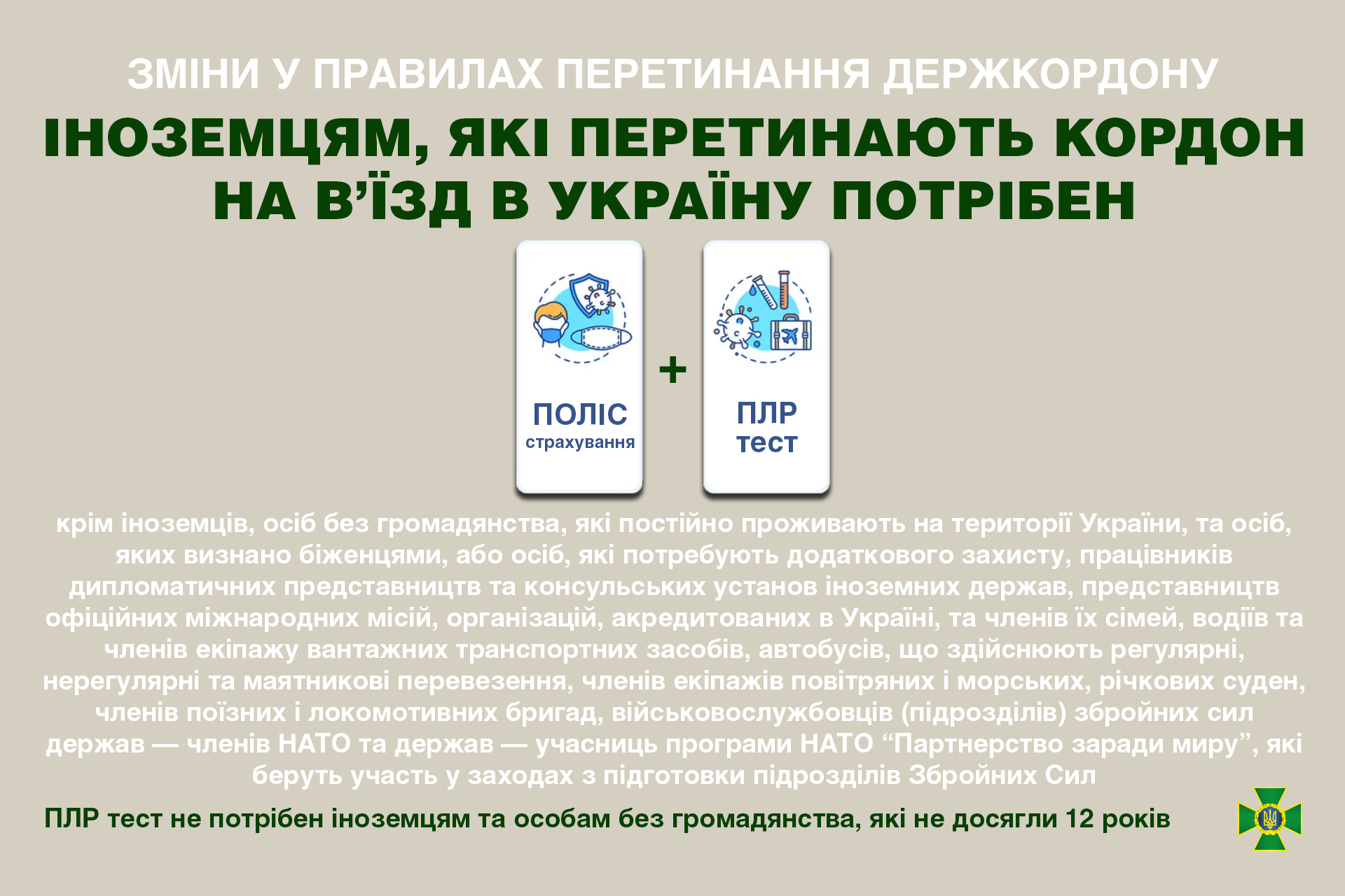 - Полис (свидетельство, сертификат) страхования, выданный страховой компанией, зарегистрированной в Украине, или иностранной страховой компанией, которая имеет представительство на территории Украины или договорные отношения со страховой компанией - партнером на территории Украины, покрывает расходы, связанные с лечением COVID-19, обсервацией, и действует на срок пребывания в Украине.