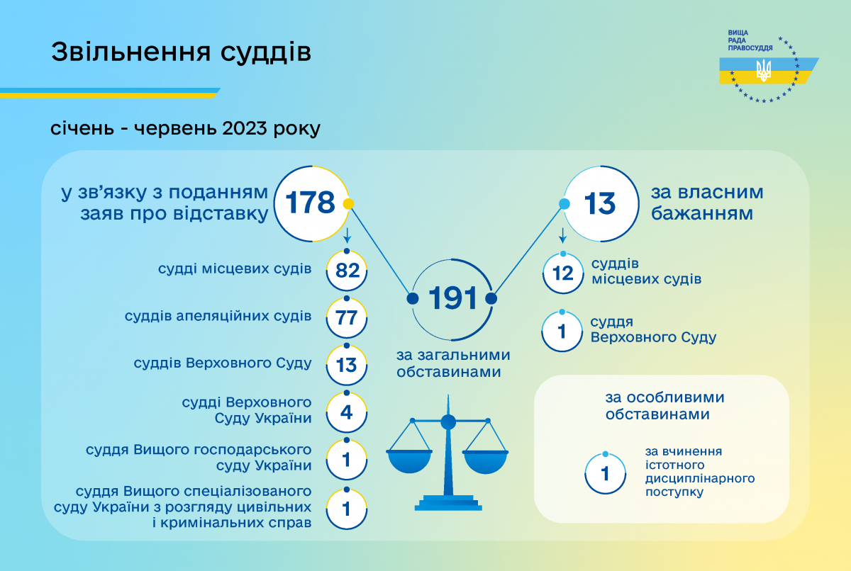 Протягом І півріччя 2023 року було звільнено 192 суддів